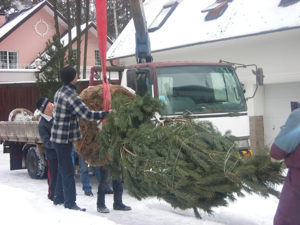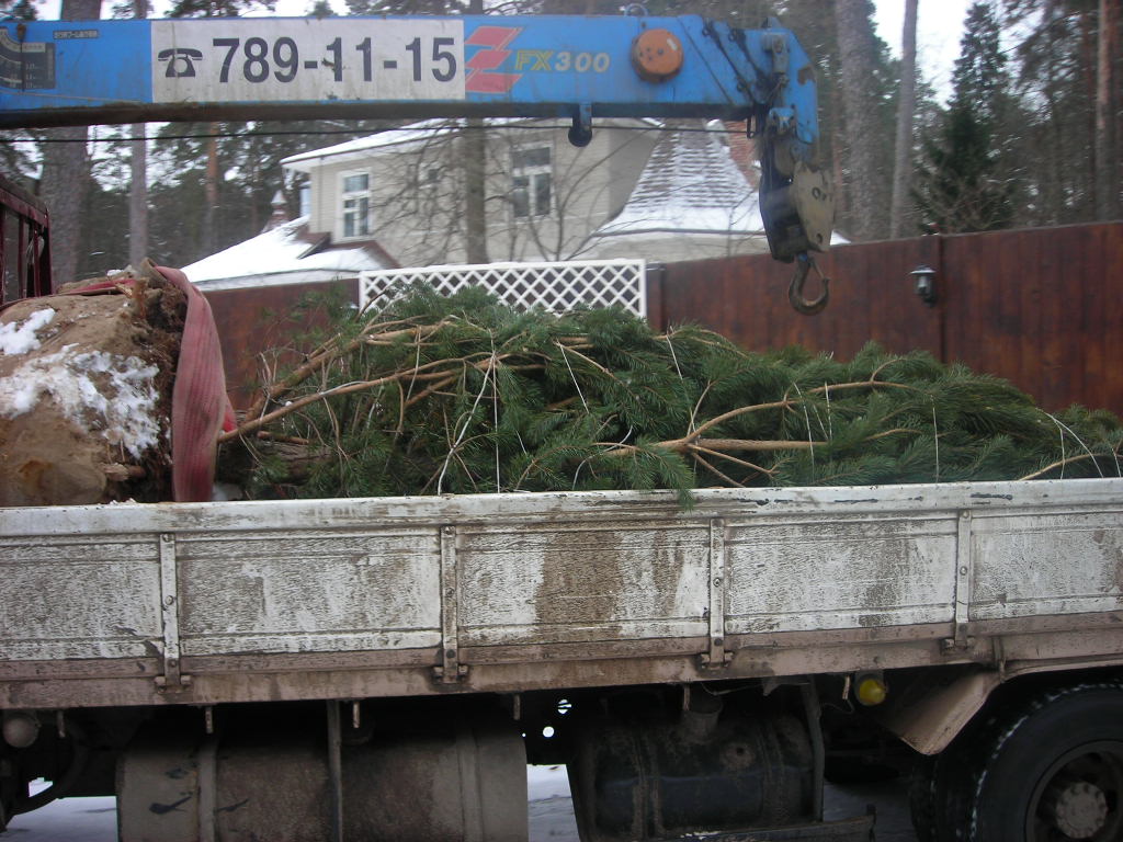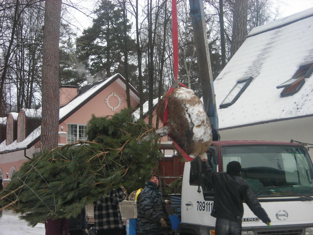 Посадка крупномеров (больших деревьев)