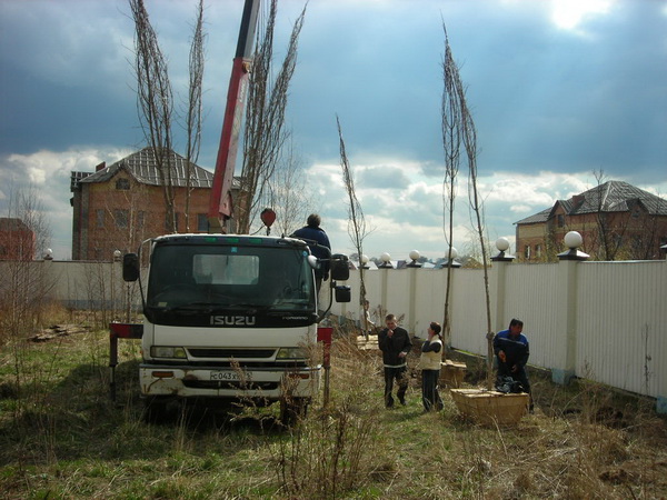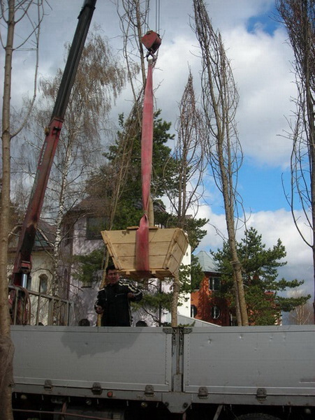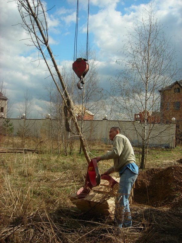 Посадка крупномеров (больших деревьев)