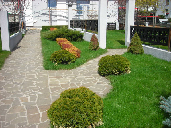Мощение дорожек природным камнем